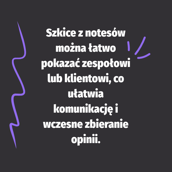 Szkice z notesów można łatwo pokazać zespołowi lub klientowi, co ułatwia komunikację i wczesne zbieranie opinii.