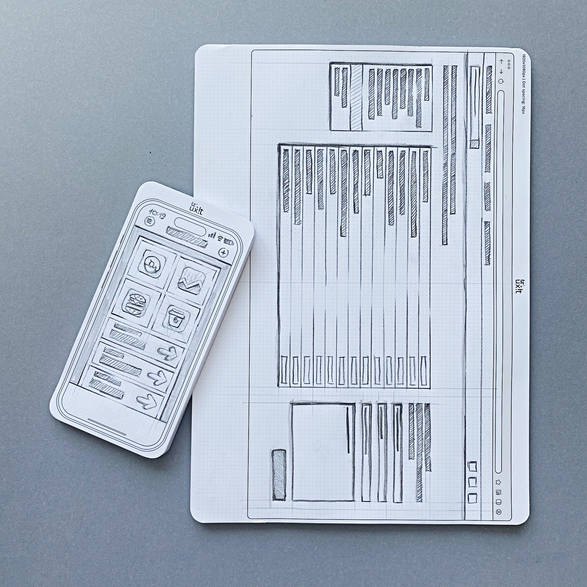 Zestaw Notesów do Makietowania – iPhone + Desktop – UX/UI Wireframes