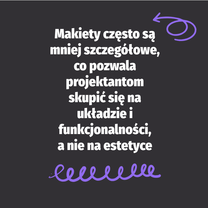 Makiety często są mniej szczegółowe, co pozwala projektantom skupić się na układzie i funkcjonalności,